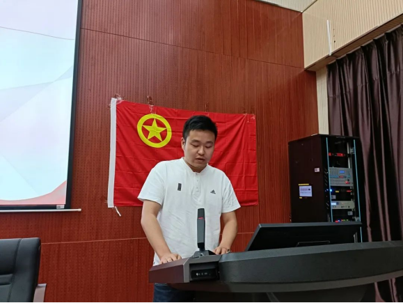 在全体起立奏唱国歌后,2021级硕士研究生靳澄宇同学宣布新团员名单,并带领新团员2021级硕士研究生高民浩同学面向团旗,庄严宣读入团誓词。2021级硕士研究生夏欣同学作为新团员的入团介绍人,向全体团员宣读《团章》中团员的义务和权利。